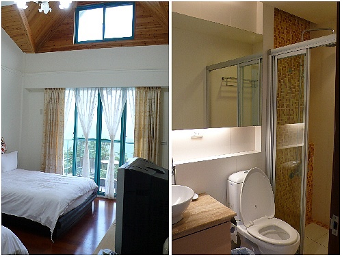 浴室是乾濕分離 (但配色跟房間有點不太搭),房間有個小角落可以喝茶看風景
